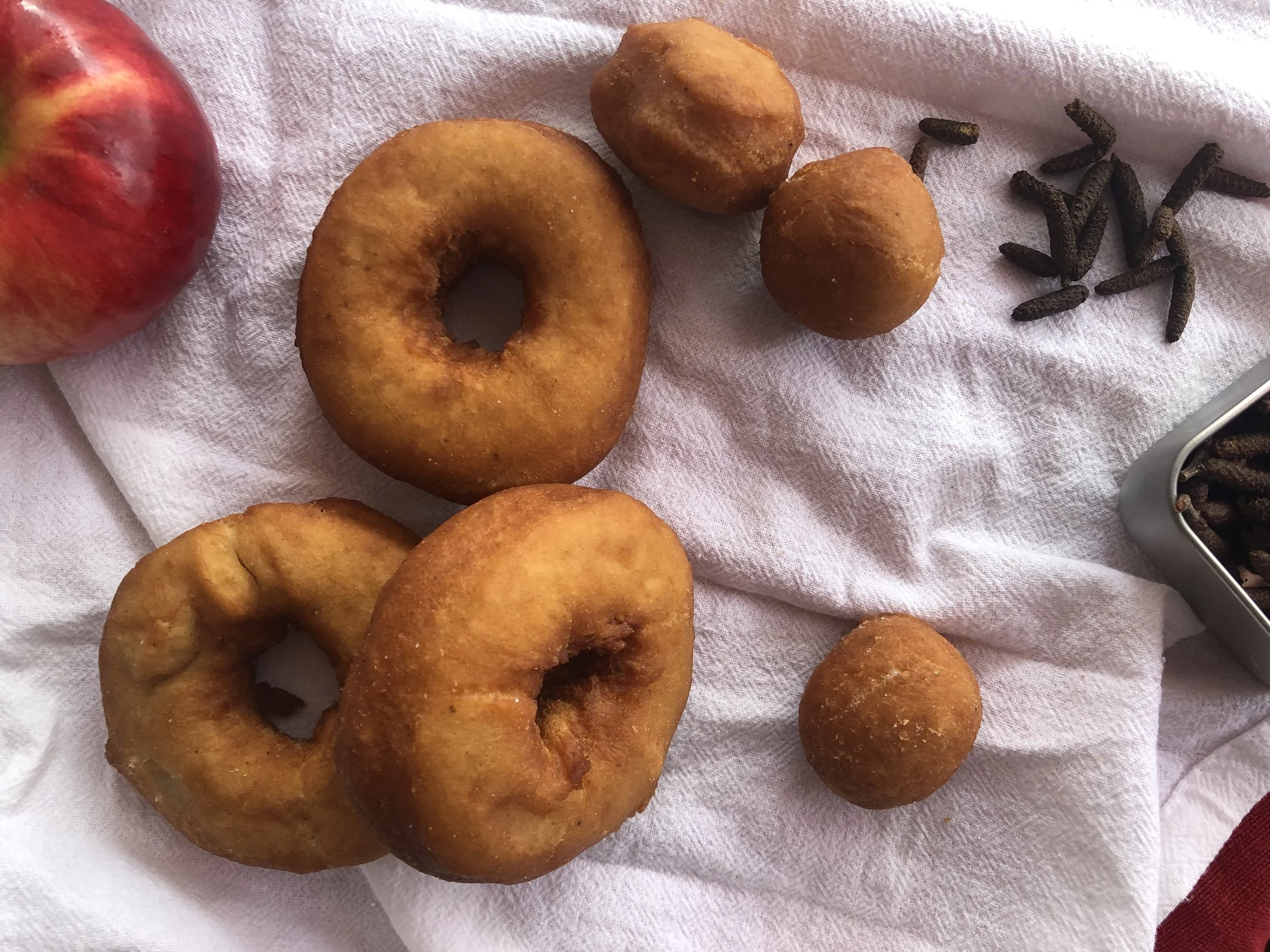 Les pommettes donnent à ces beignes une belle acidité qui équilibre le tout. Salé, sucré, acide, croustillant et moelleux... Miam!